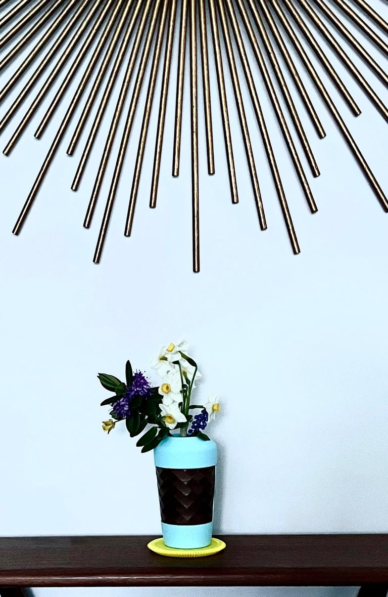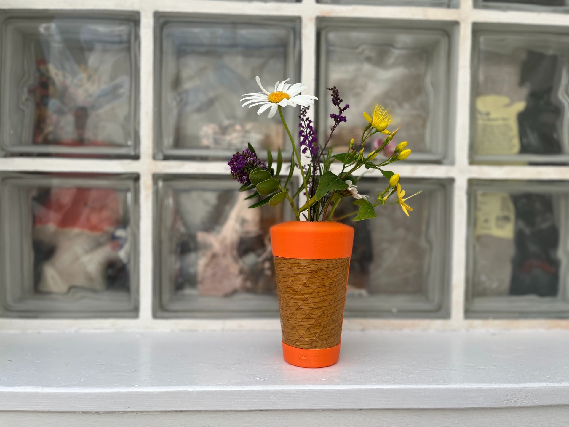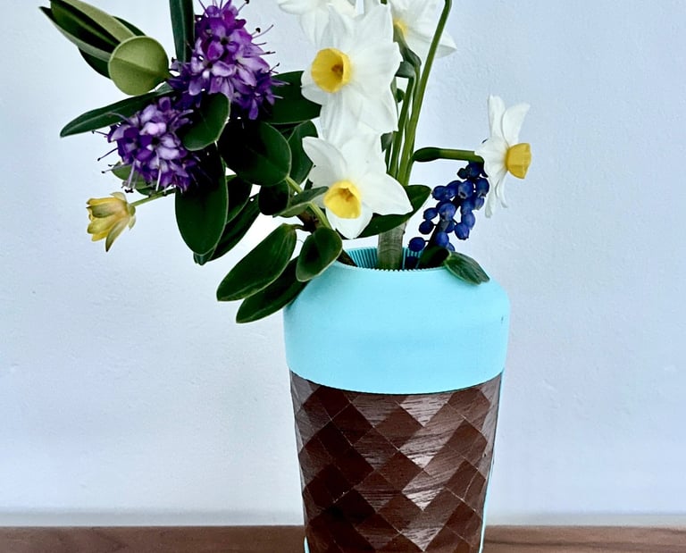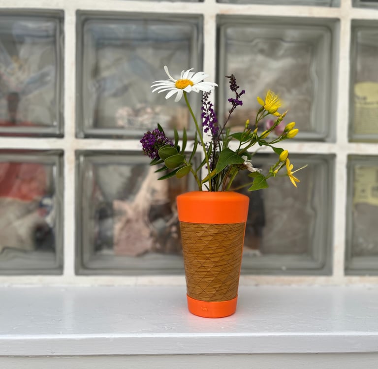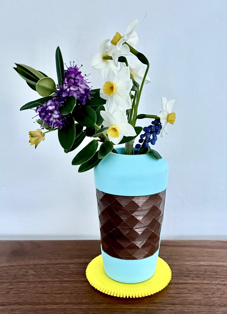 The big brother of the Sprig vase is now available. Made from PLA and hand crafted wood texture, this bigger version holds more stems and is more imposing. Similar to its younger sister the big Sprig is designed to hold and showcase hedge row curb-side weeds such as Dandelions etc..